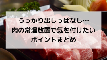 暮らしうっかり出しっぱなし…肉の常温放置で気を付けたいポイントまとめ 肉を常温に置いたままにすると、品質が落ちやすくなります。 特に気温が高い時期は、短い時間でも状態が変わってしまうことがあります。 「うっかり出しっぱなしにしてしまったけど、大丈夫かな?」と不安になりますよね。 この記事で...暮らし